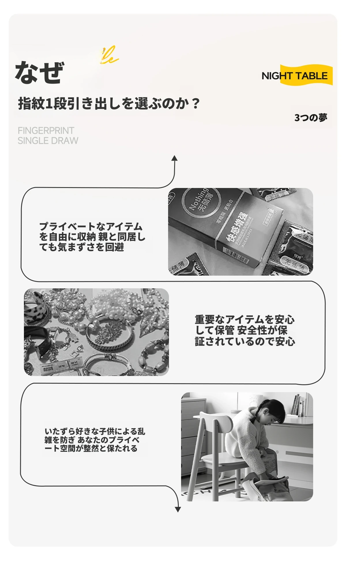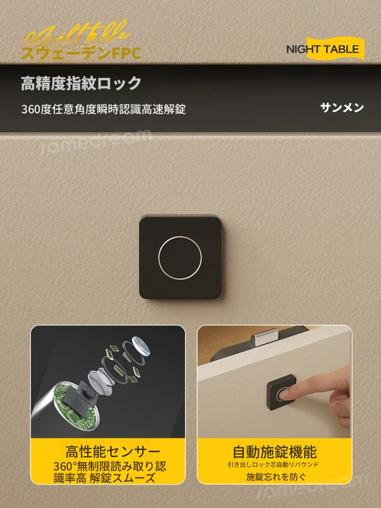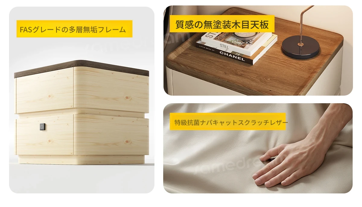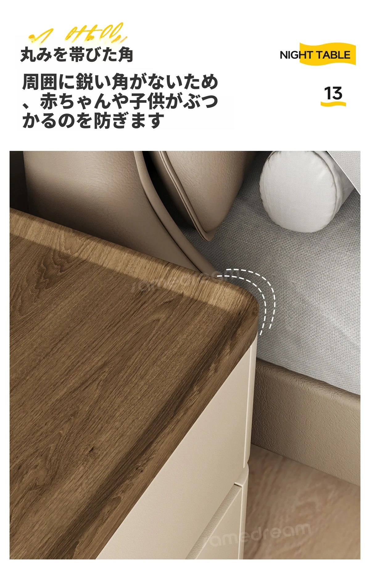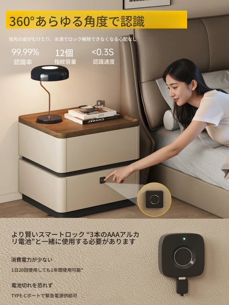 2025年新款!三夢スマート無垢材ロック付きベッドサイドテーブル - 高級感溢れる軽奢スタイルで、居心地の良い寝室を演出する小型サイドキャビネット。あなたの夢の空間を実現します!