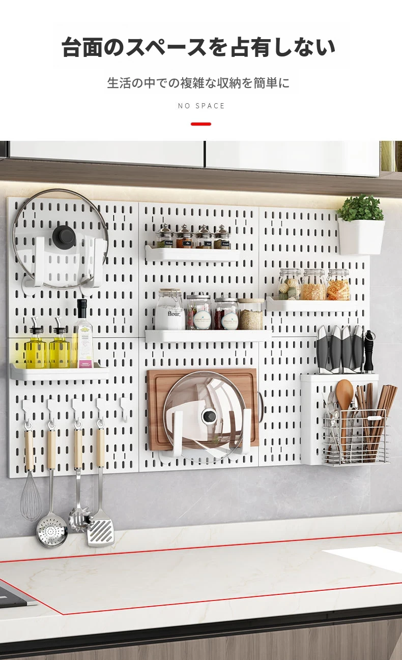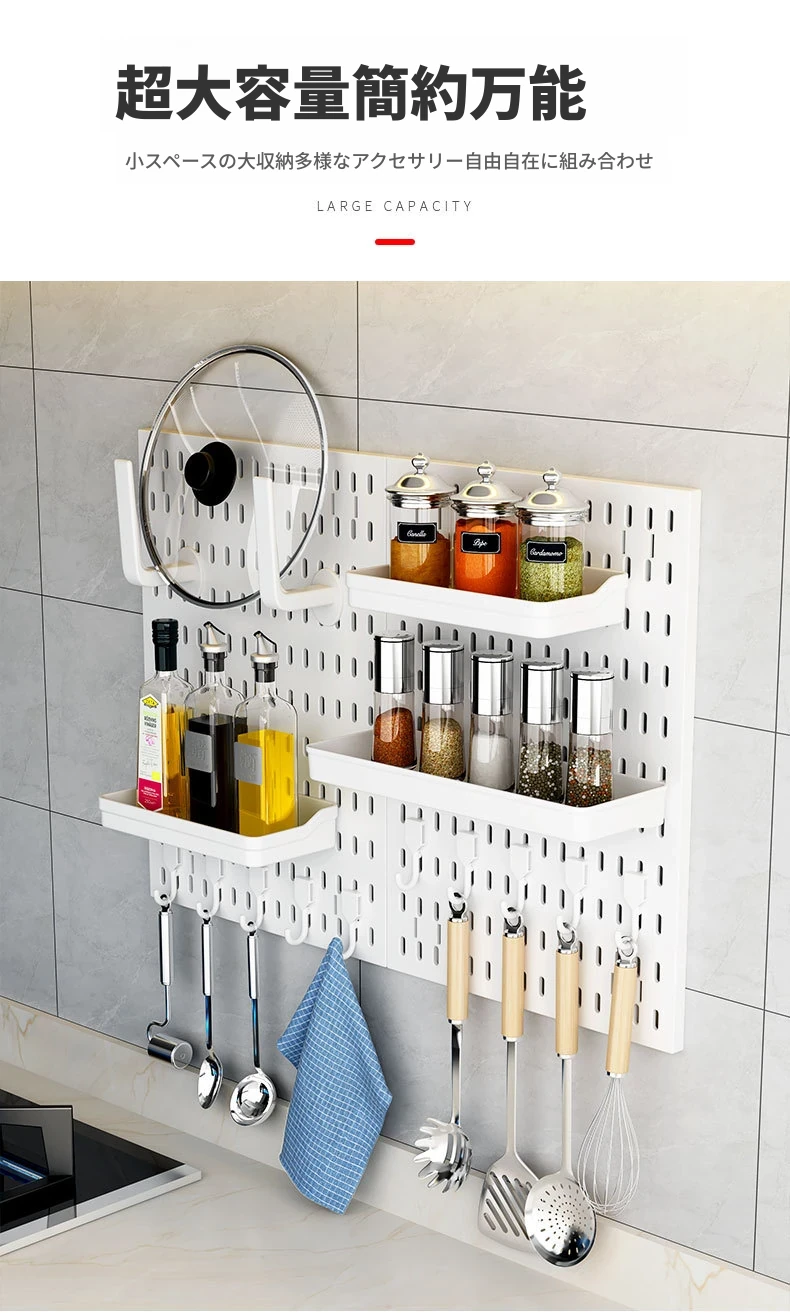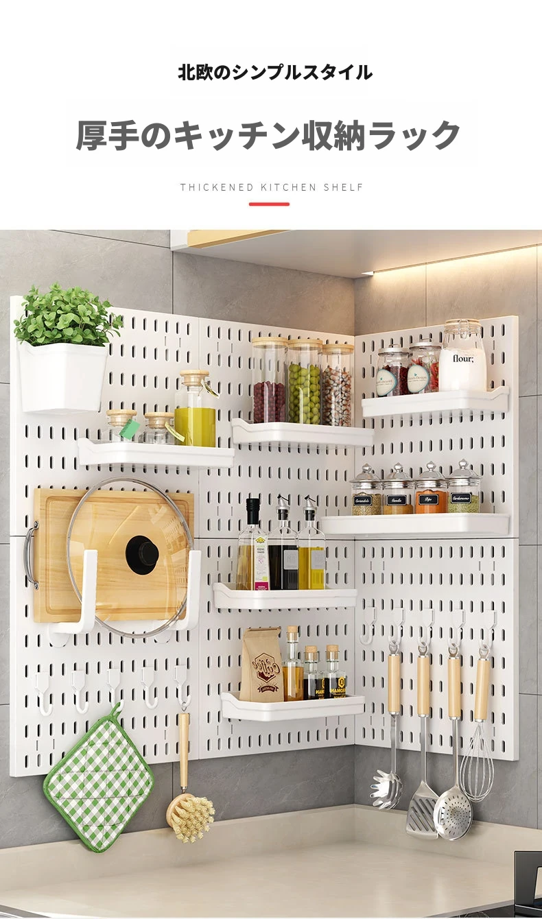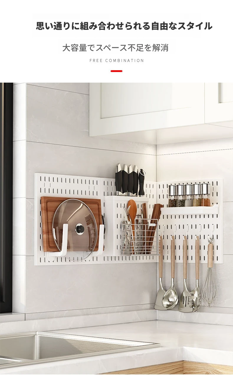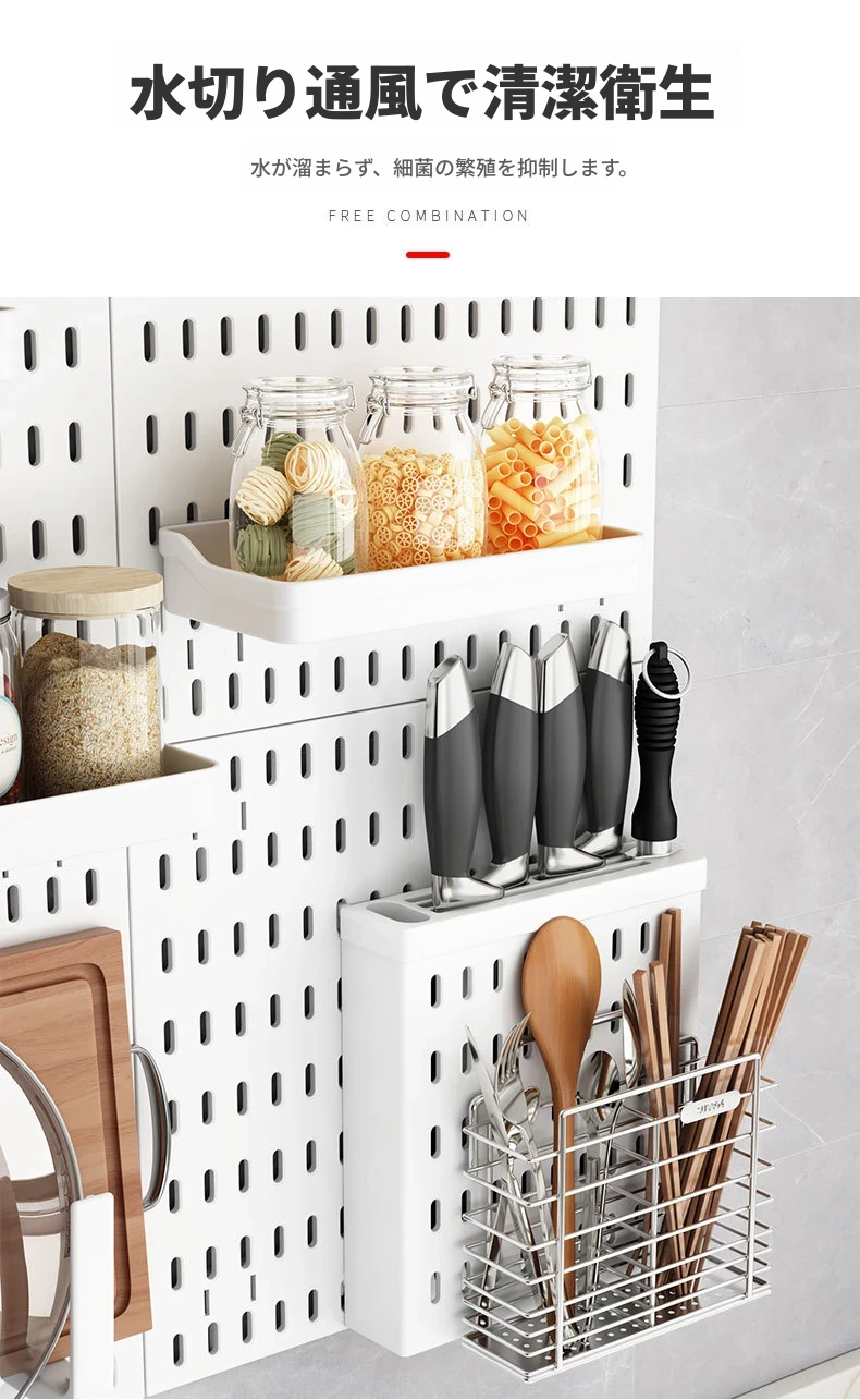 三夢のドリル不要キッチン収納ラック - 壁掛けスパイスラック、ナイフスタンド、鍋蓋ホルダーを一つに!便利なディスプレイ&収納ボードで、おしゃれなキッチンを演出する理想的なアイテムです。