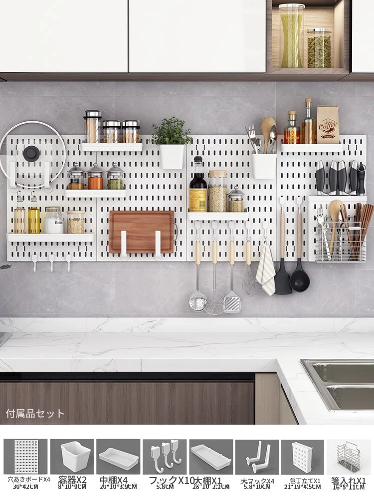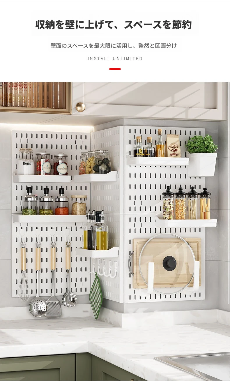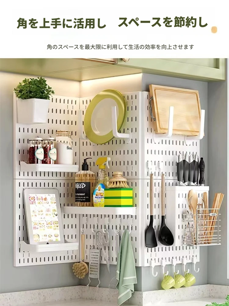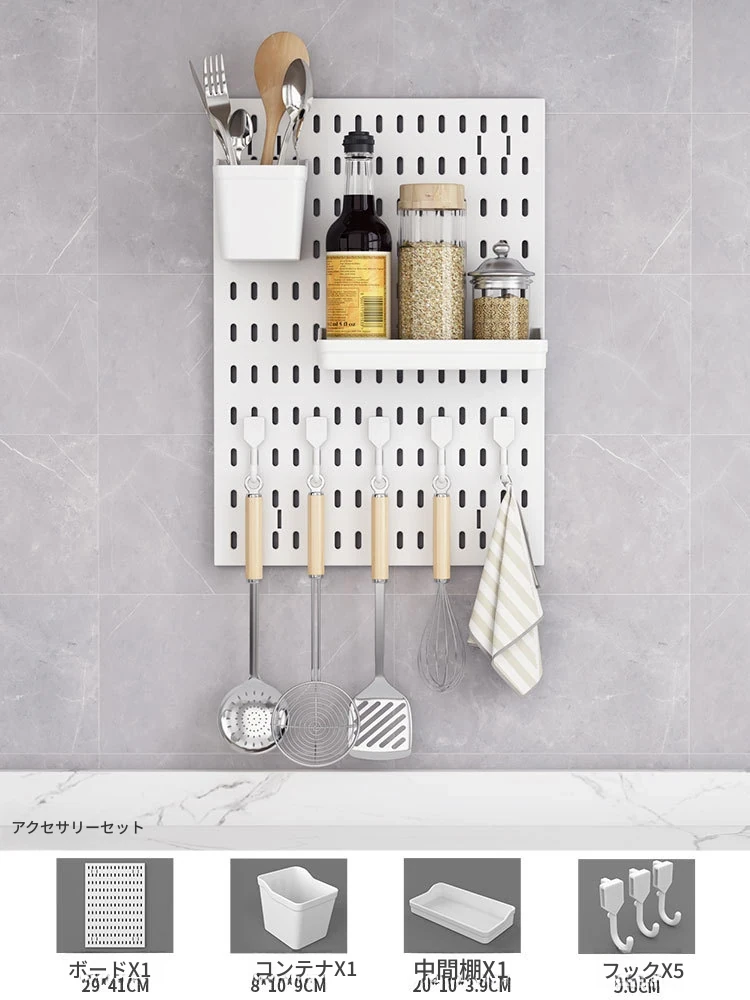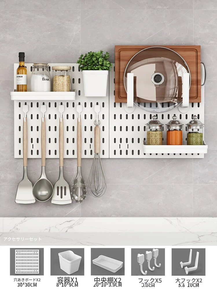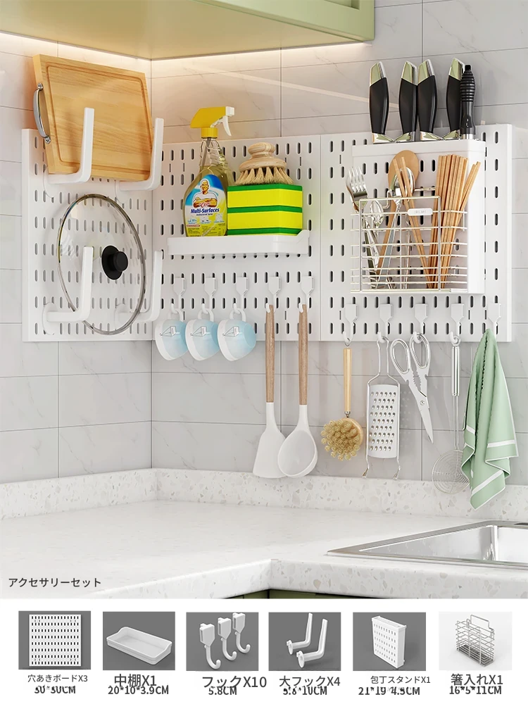 三夢のドリル不要キッチン収納ラック - 壁掛けスパイスラック、ナイフスタンド、鍋蓋ホルダーを一つに!便利なディスプレイ&収納ボードで、おしゃれなキッチンを演出する理想的なアイテムです。