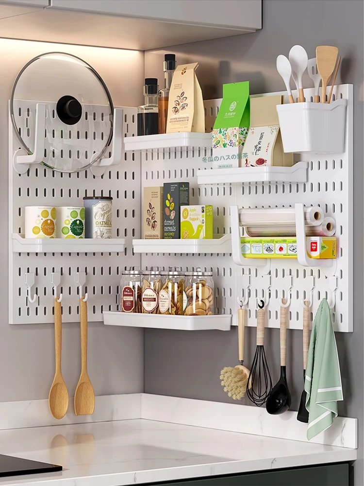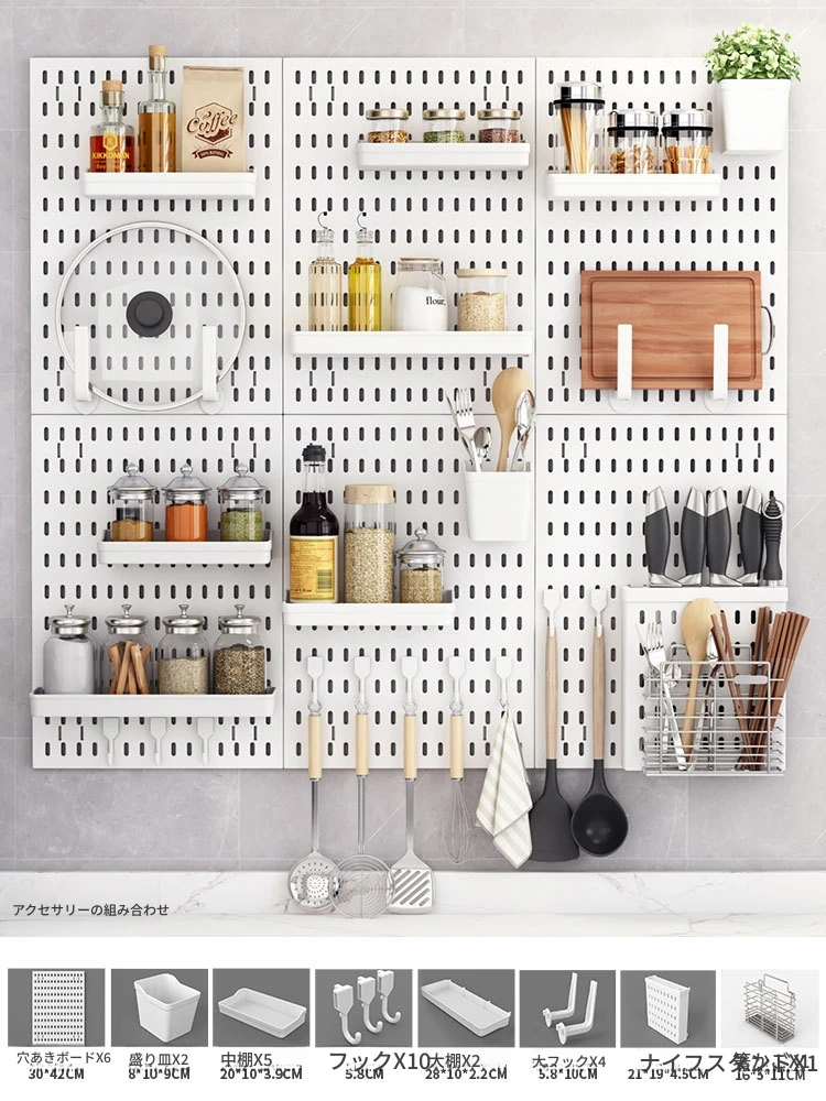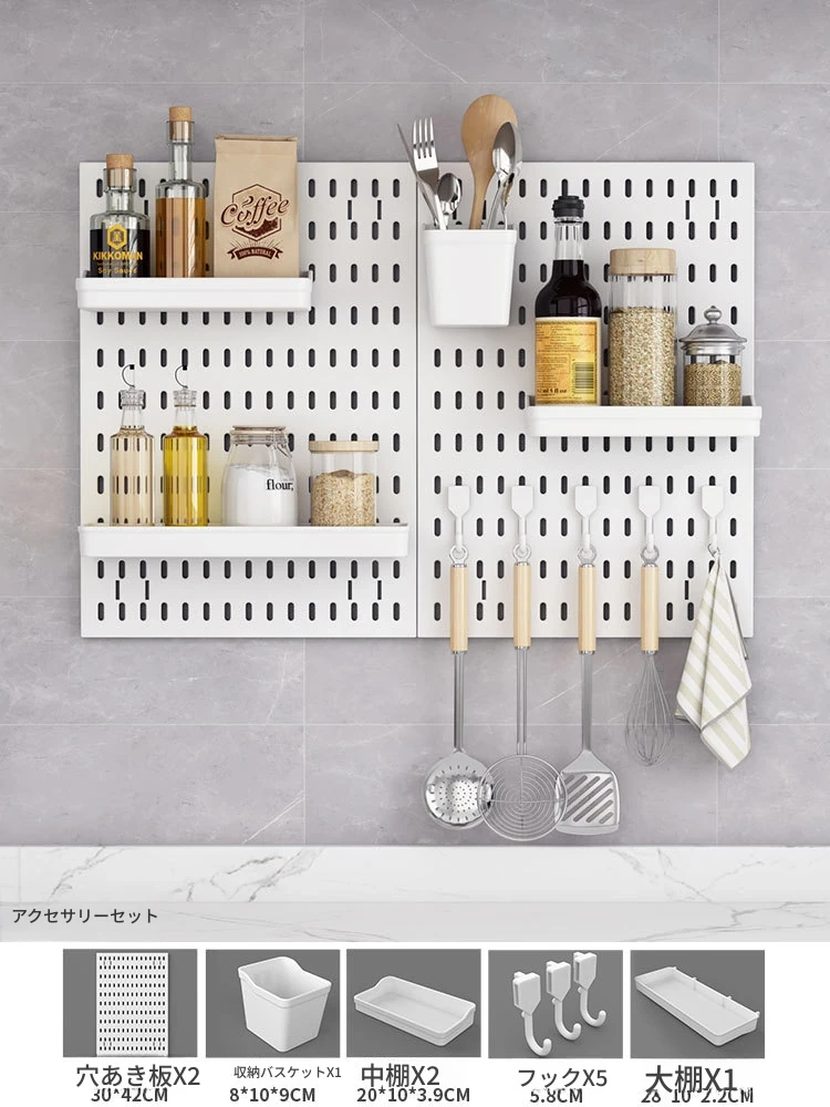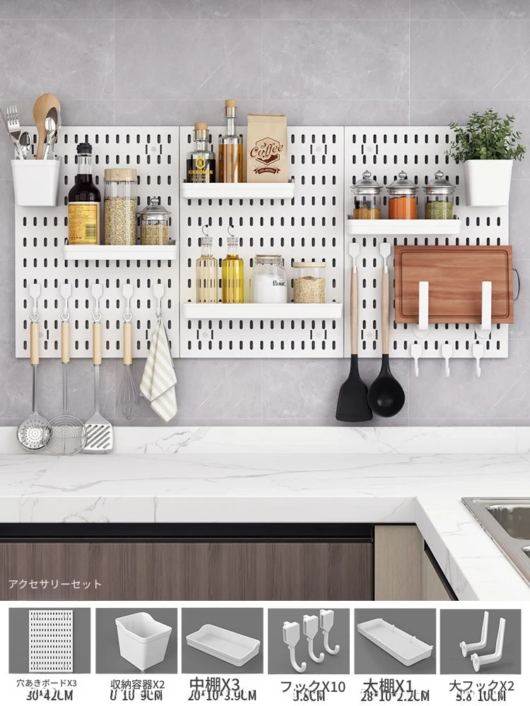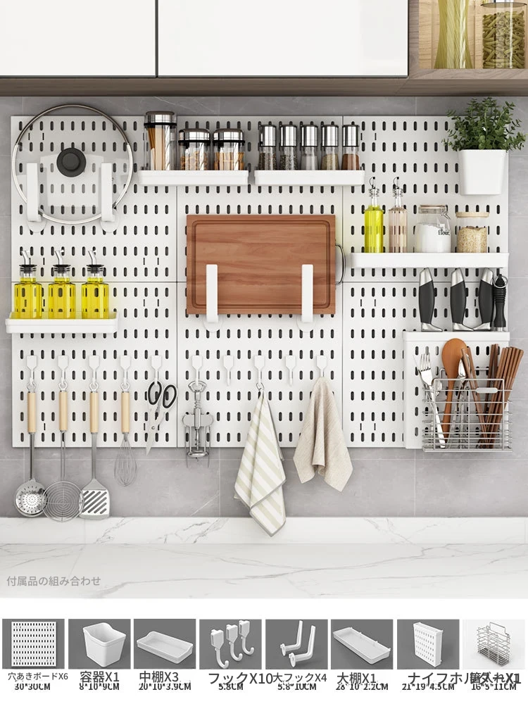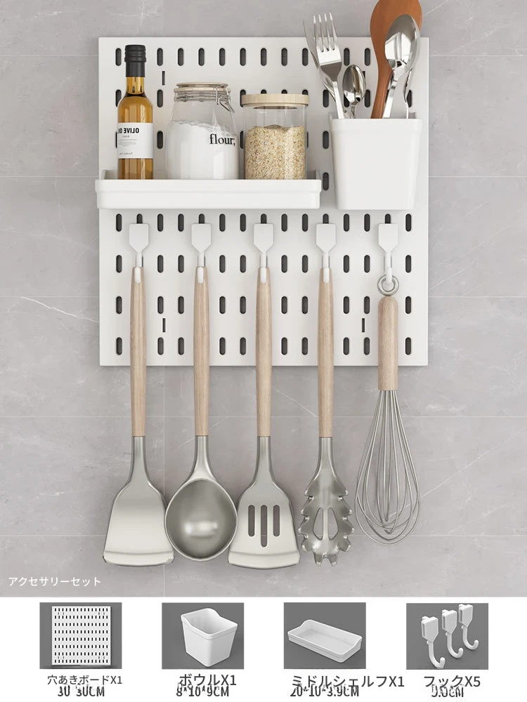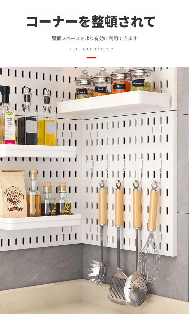三夢のドリル不要キッチン収納ラック - 壁掛けスパイスラック、ナイフスタンド、鍋蓋ホルダーを一つに!便利なディスプレイ&収納ボードで、おしゃれなキッチンを演出する理想的なアイテムです。