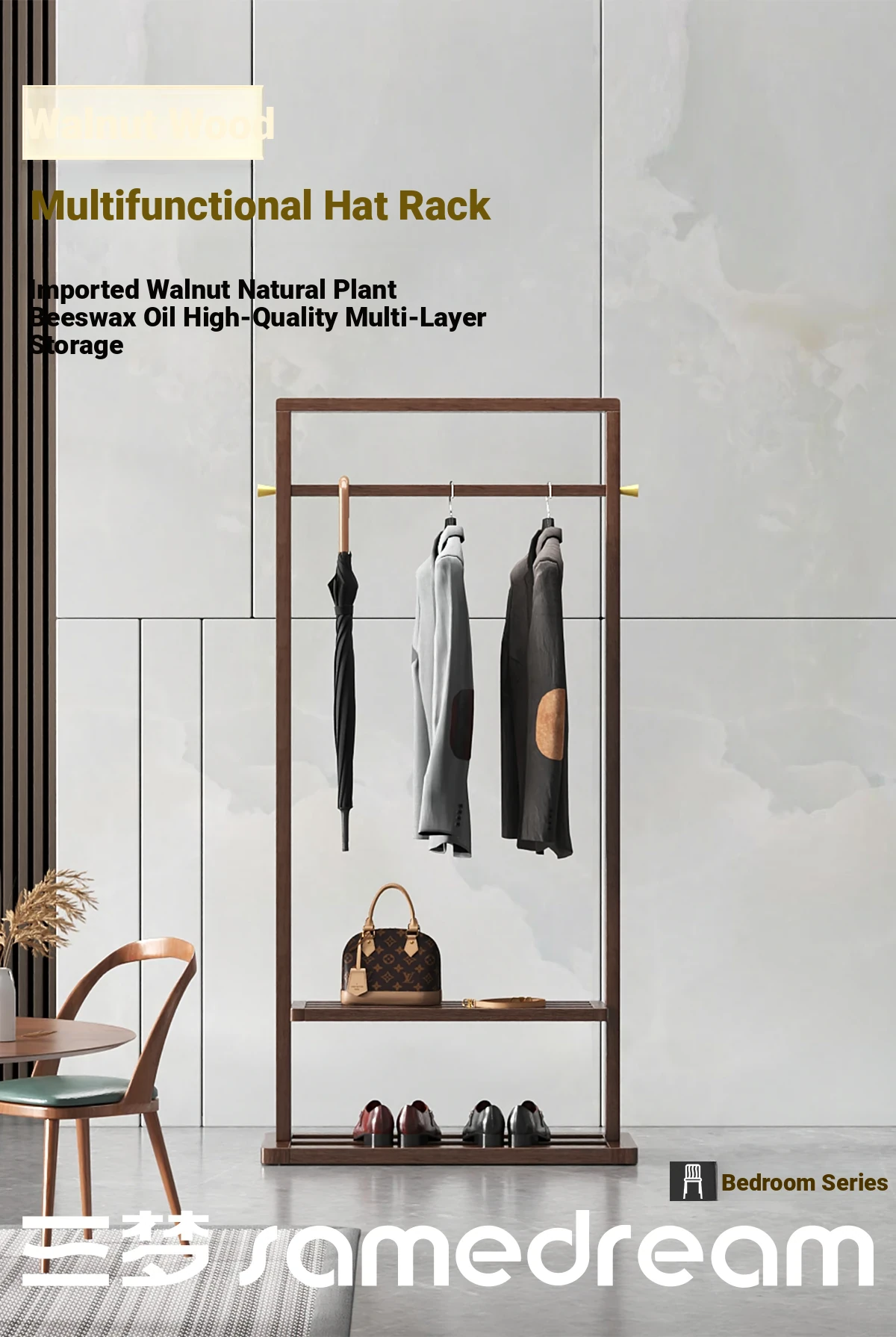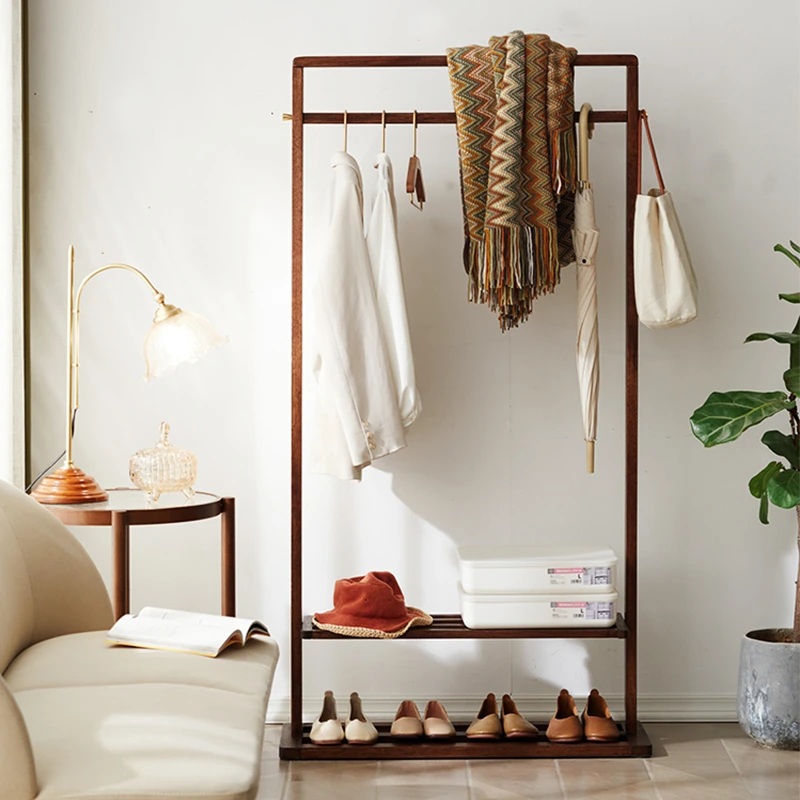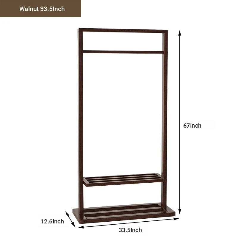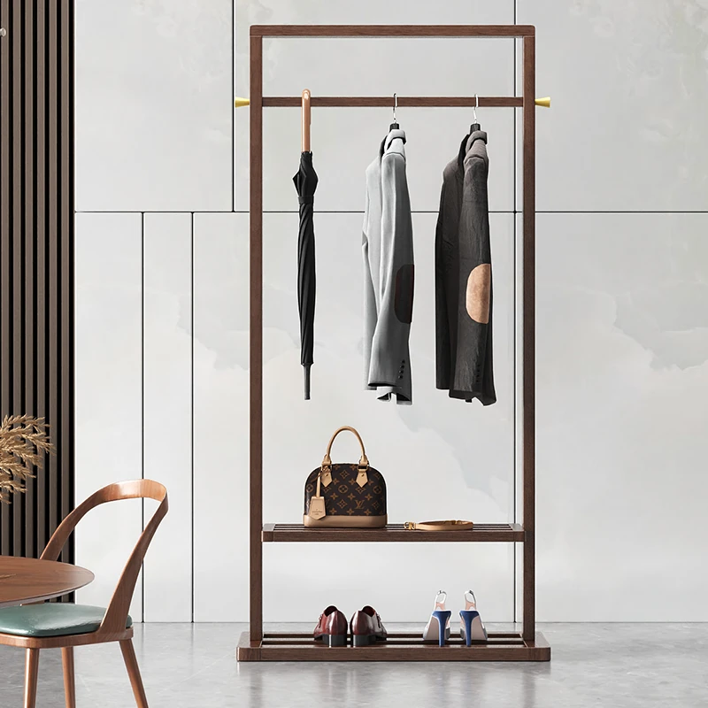 Elegant Solid Black Walnut Coat Rack - Minimalist Luxury Freestanding Hanger & Storage Shelf for Bedroom - Classic Chinese Style Clothes Stand