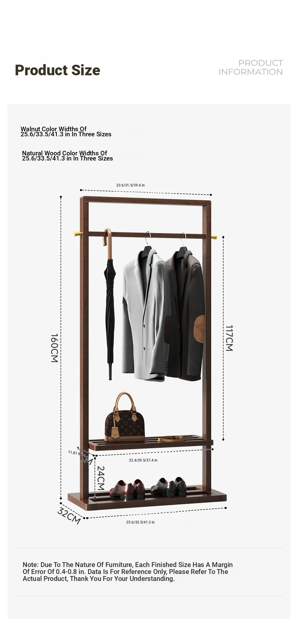 Width 33.46in + brass hook [Auguhman Import Walnut] Classy Export sheet