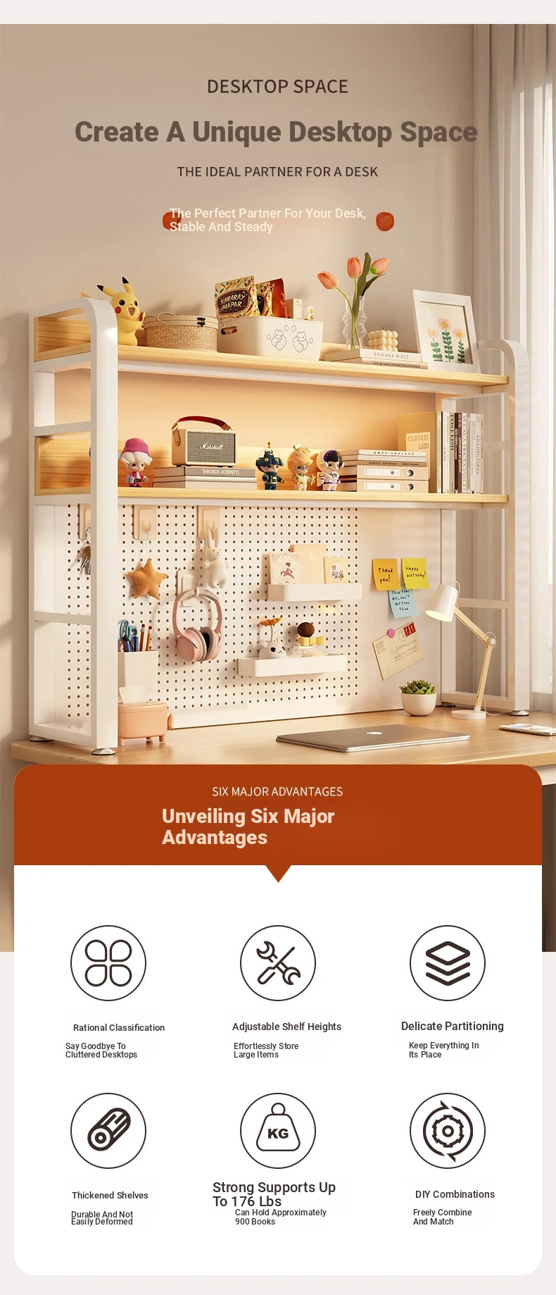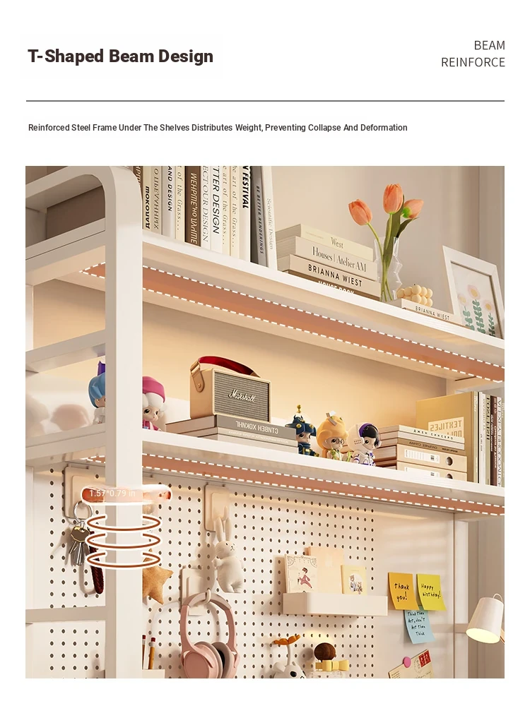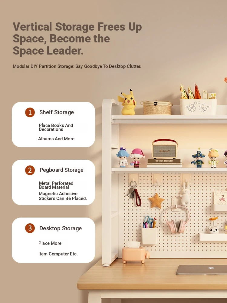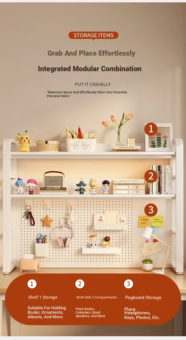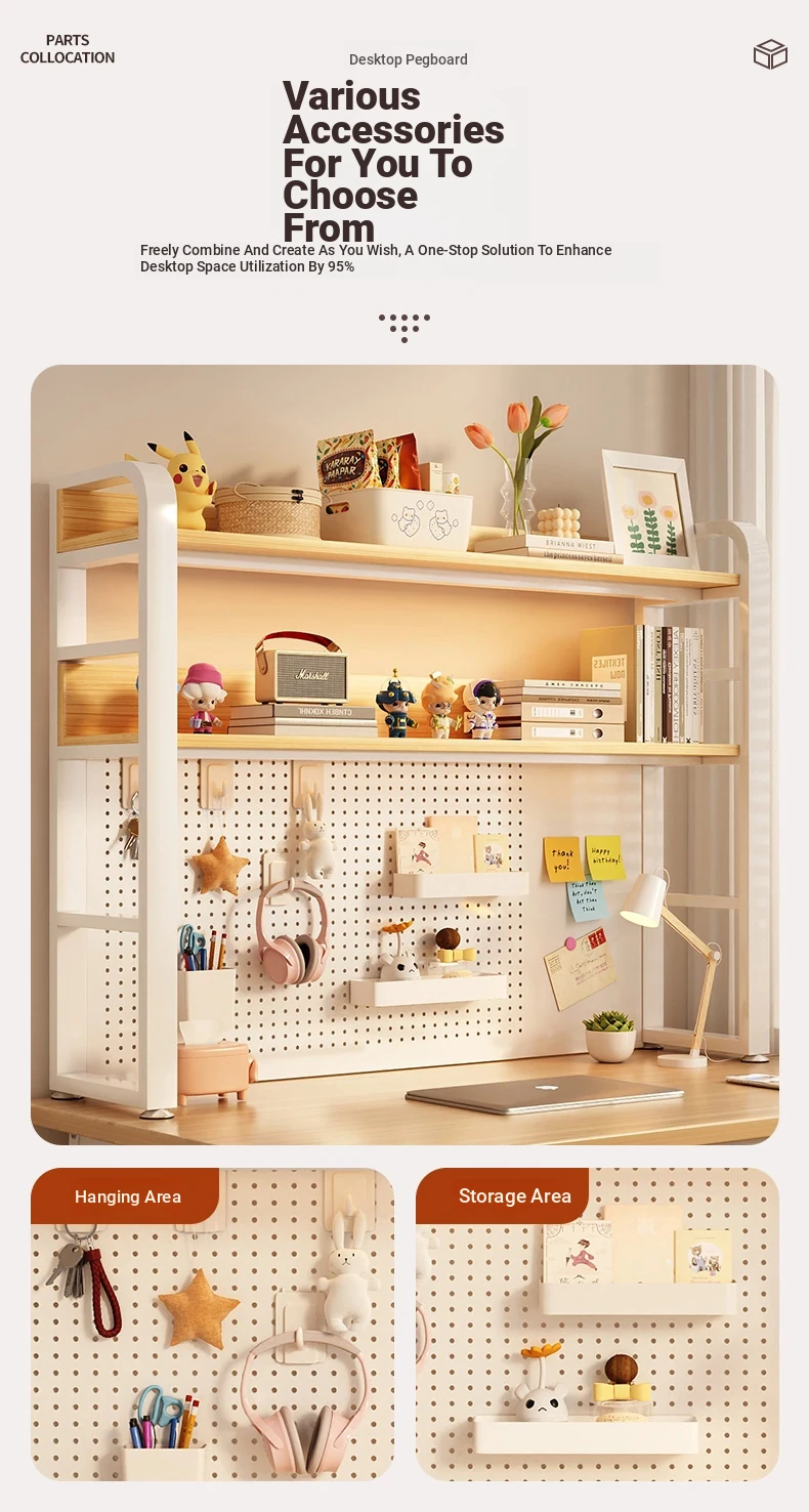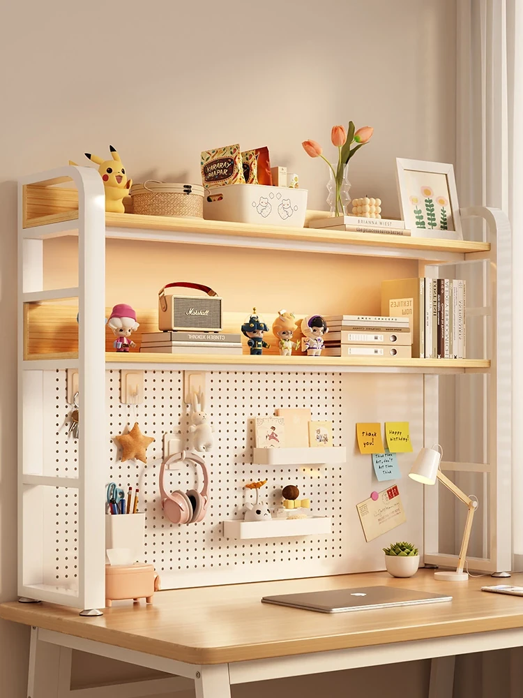 Minimalist Pegboard Desktop Bookshelf for Kids & Students - Multi-Layer Steel Storage Rack for Computer Desks and Office Use, Perfect for Organized Workspaces