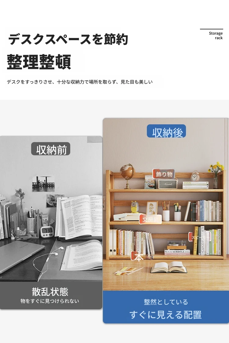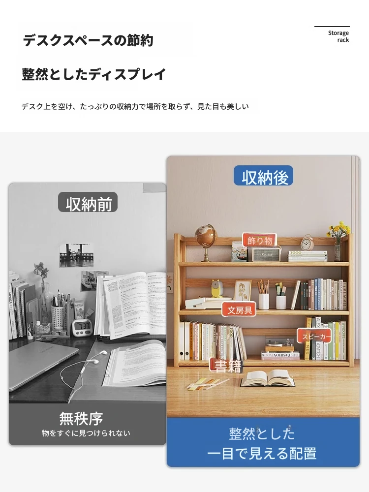 デスク上の多機能書棚 - オフィスや学生寮に最適!複数の収納スペースで、整理整頓をサポートします。スタイリッシュで機能的なデザインで、あなたの作業環境を快適にします。