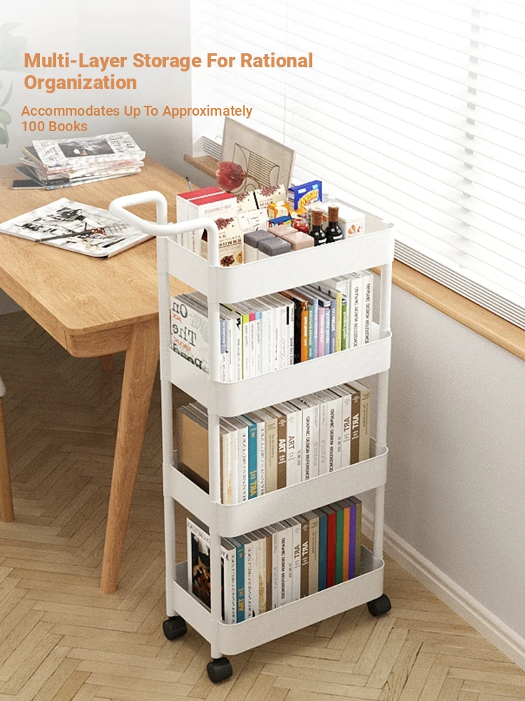Multi-Layer Rolling Snack & Book Cart - Versatile Storage Rack for Dorm Rooms, Bedrooms, and Offices - Stylish and Functional Side Table on Wheels