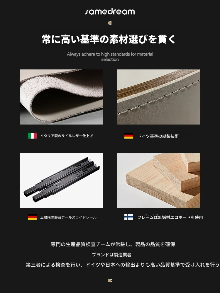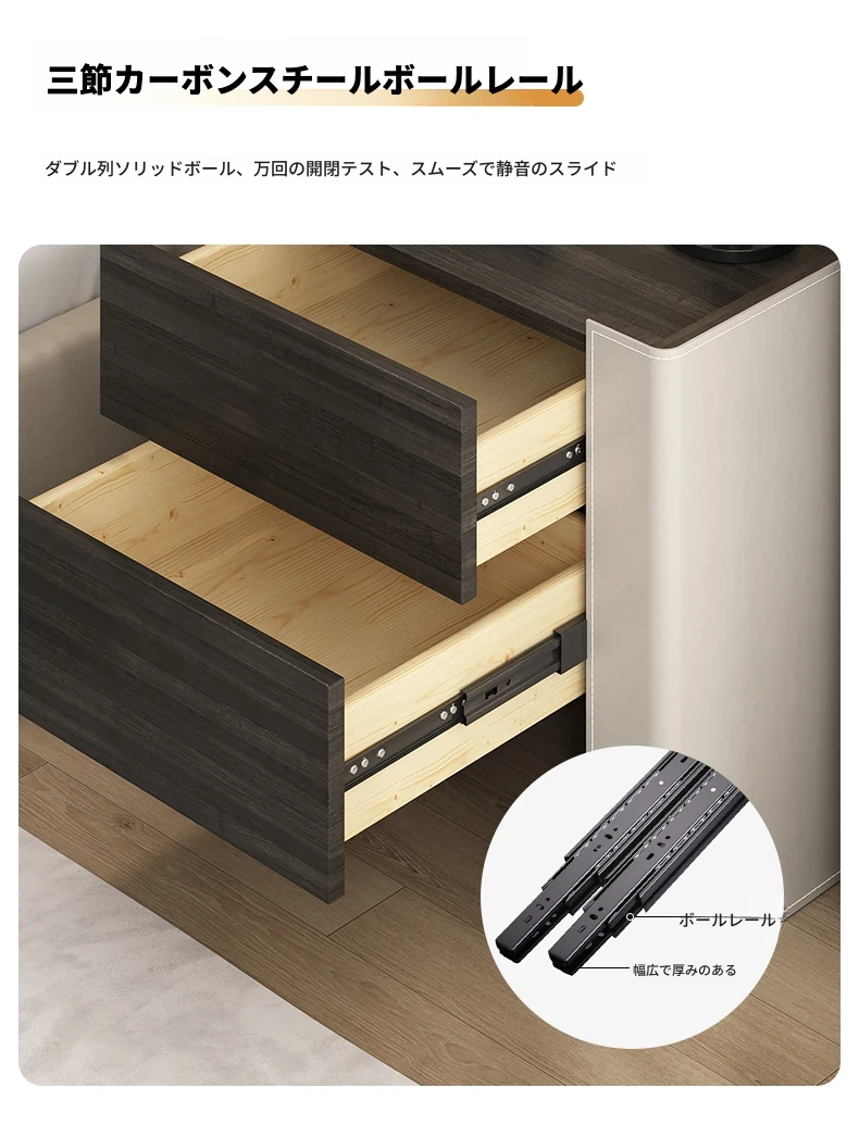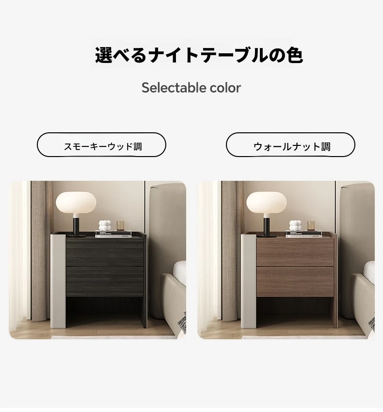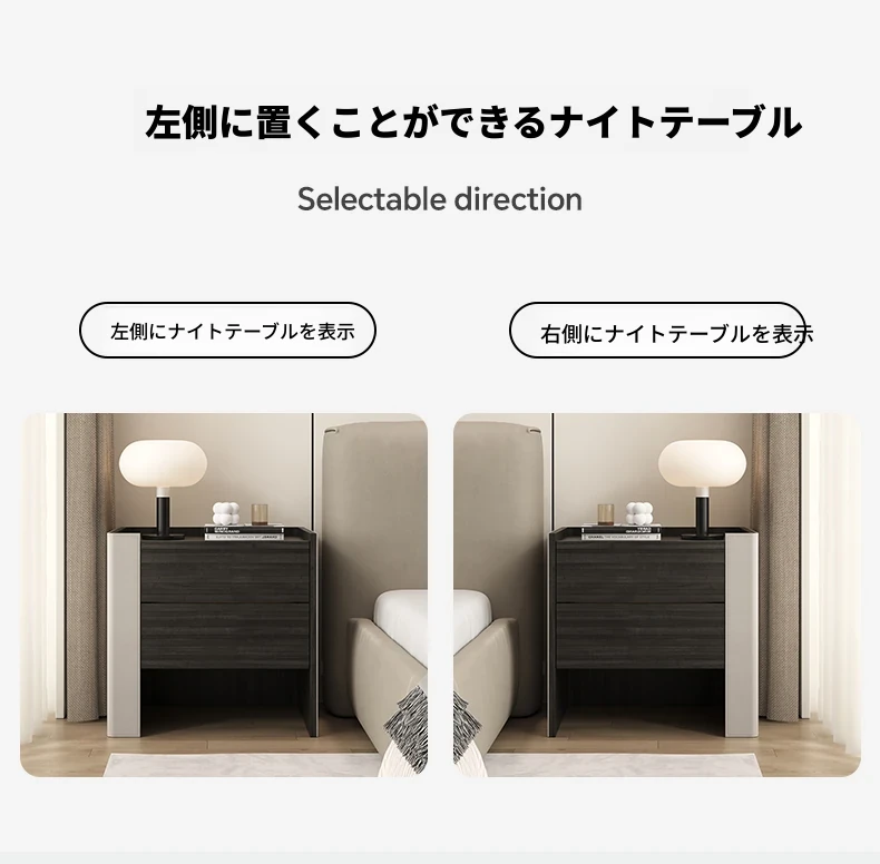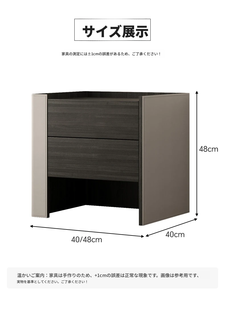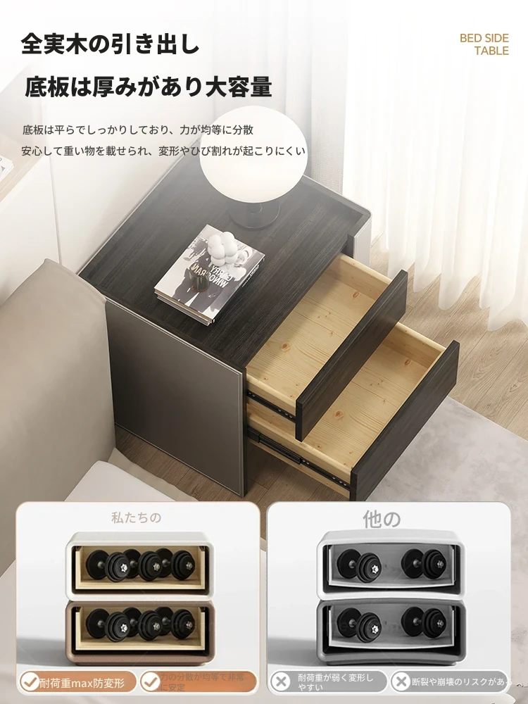 三夢の無垢材ナイトテーブル - シンプルでモダンな2025年新作、ラグジュアリー感溢れるサドルレザー仕立てのベッドサイドキャビネット。あなたの寝室に洗練された雰囲気をプラス!