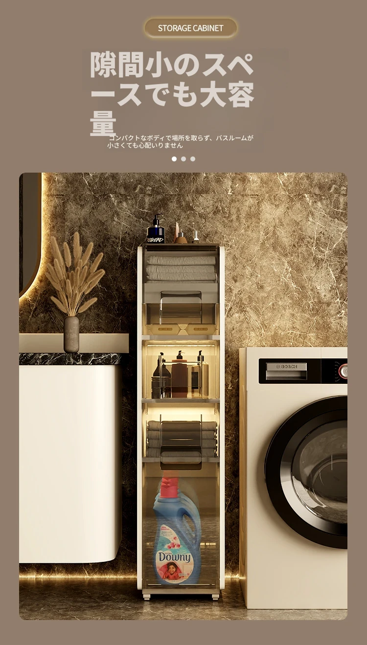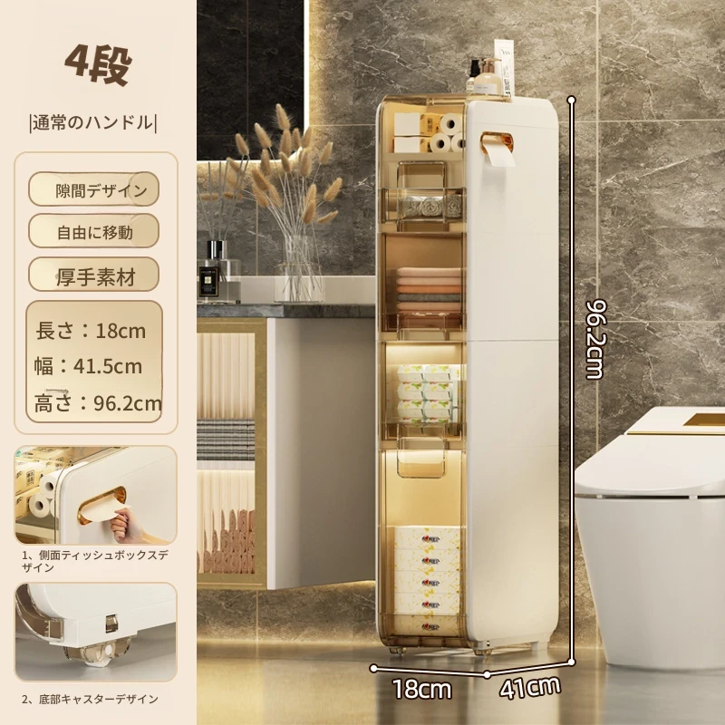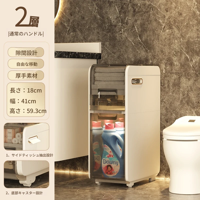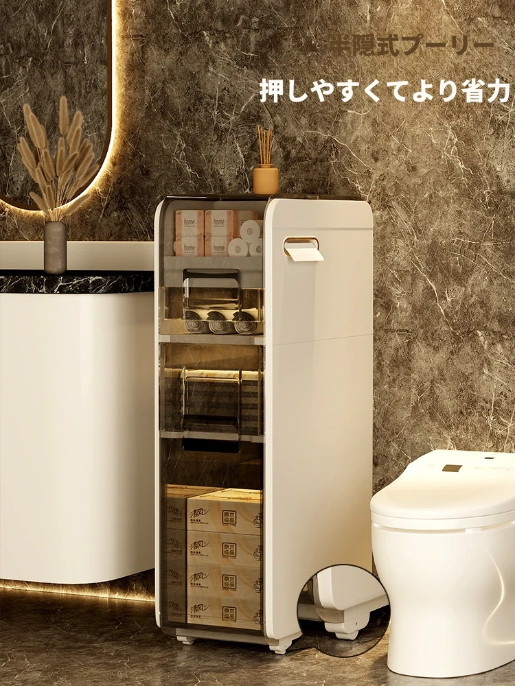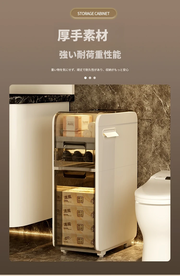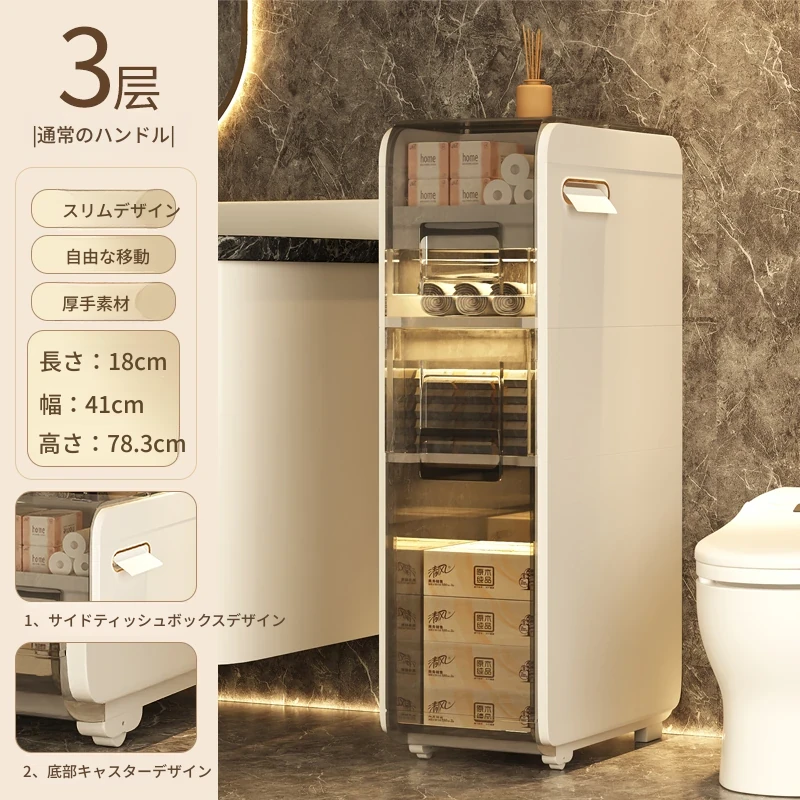 軽やかに快適さをプラス!すっきり収納できるデザインの浴室用スリムキャビネット - トイレや洗面所に最適、組み立て不要で簡単設置、トイレ空間をおしゃれに演出します。