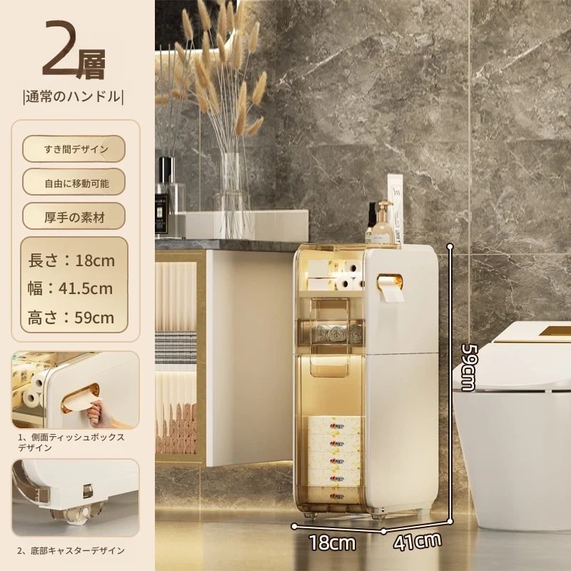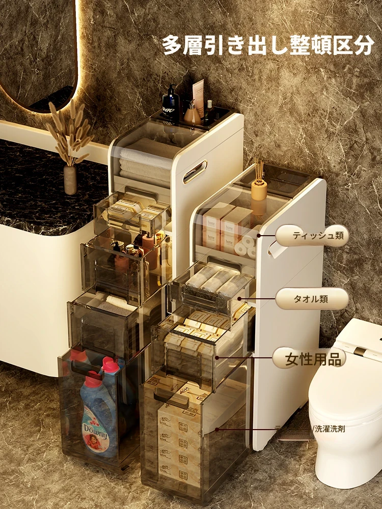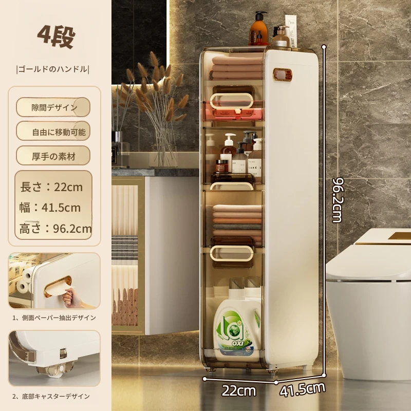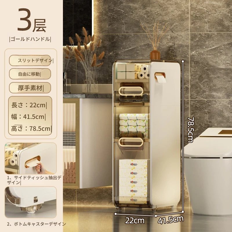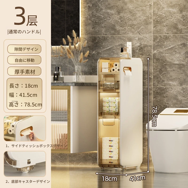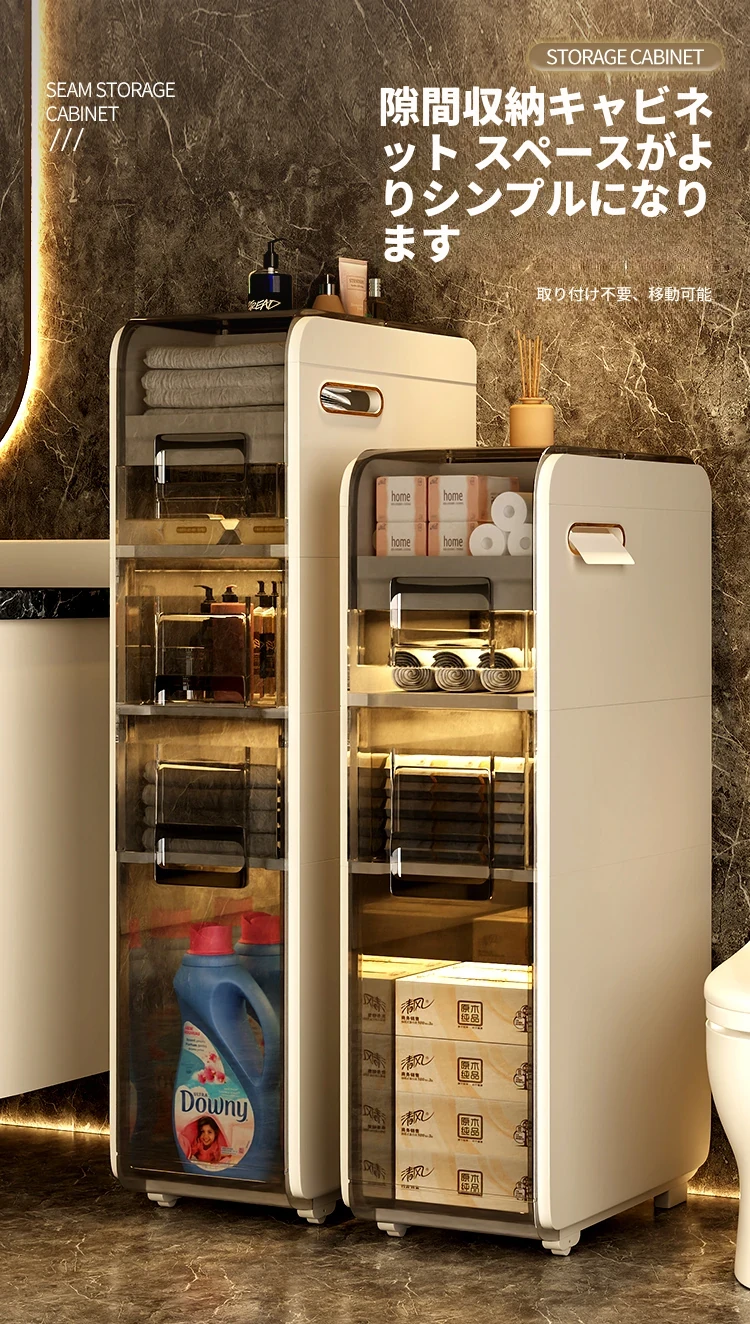 軽やかに快適さをプラス!すっきり収納できるデザインの浴室用スリムキャビネット - トイレや洗面所に最適、組み立て不要で簡単設置、トイレ空間をおしゃれに演出します。