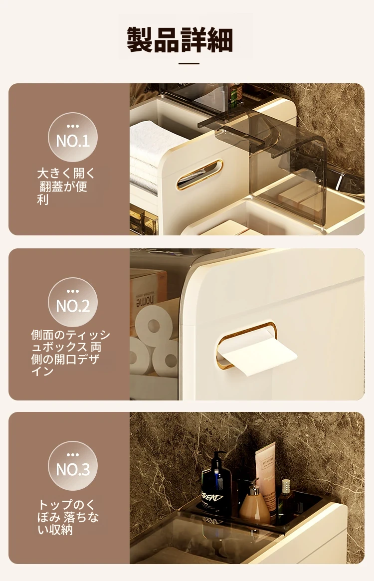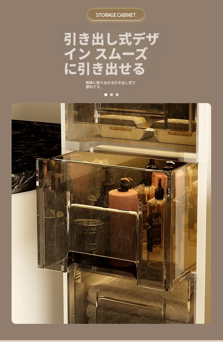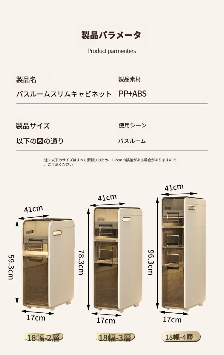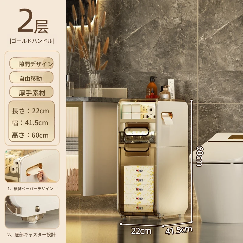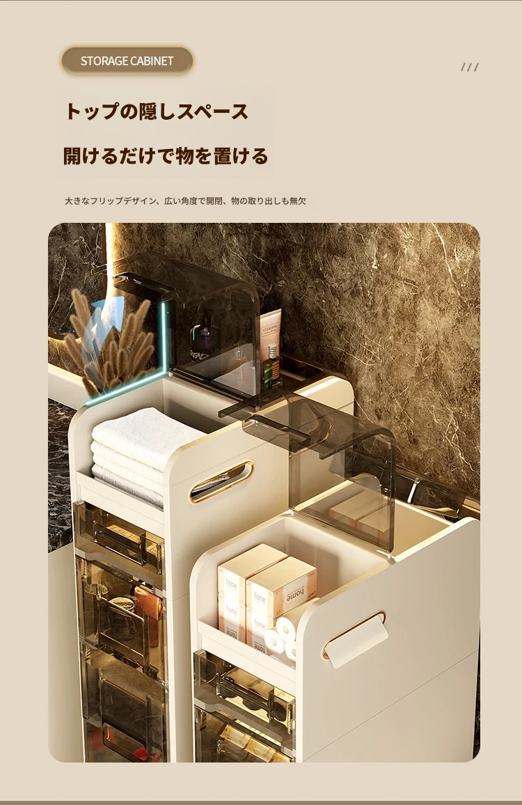 軽やかに快適さをプラス!すっきり収納できるデザインの浴室用スリムキャビネット - トイレや洗面所に最適、組み立て不要で簡単設置、トイレ空間をおしゃれに演出します。