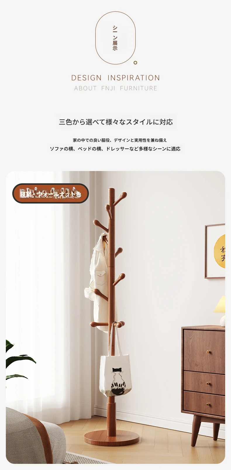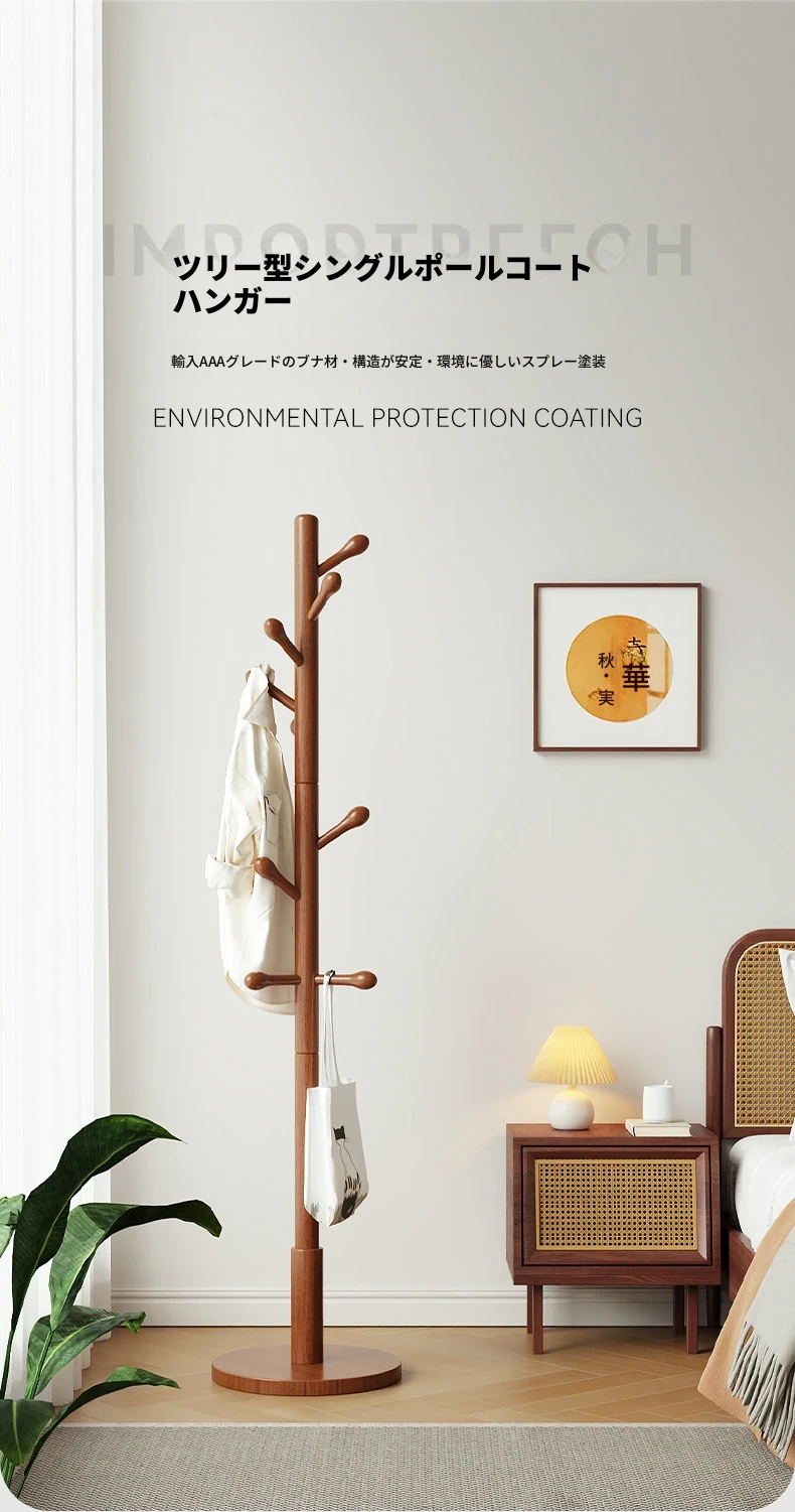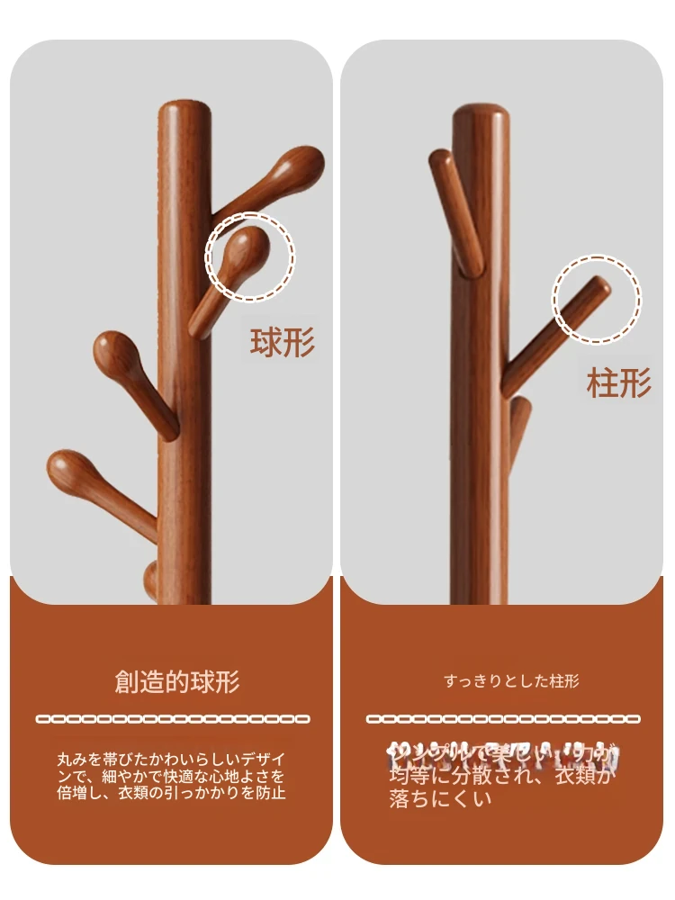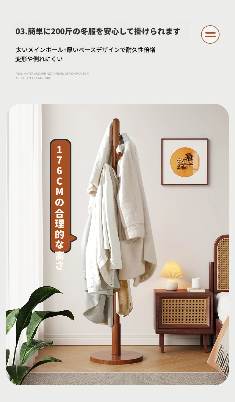 三夢の無垢材ハンガー/立て掛け式コートラック|シンプルモダンデザイン|寝室・リビングに最適|衣類やカバンを美しく収納!