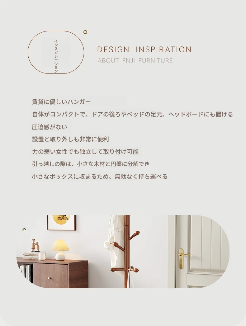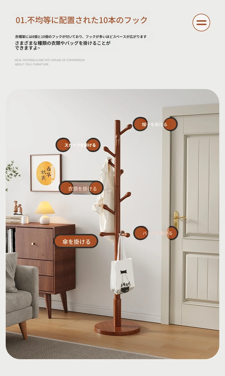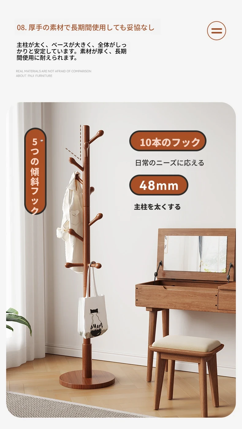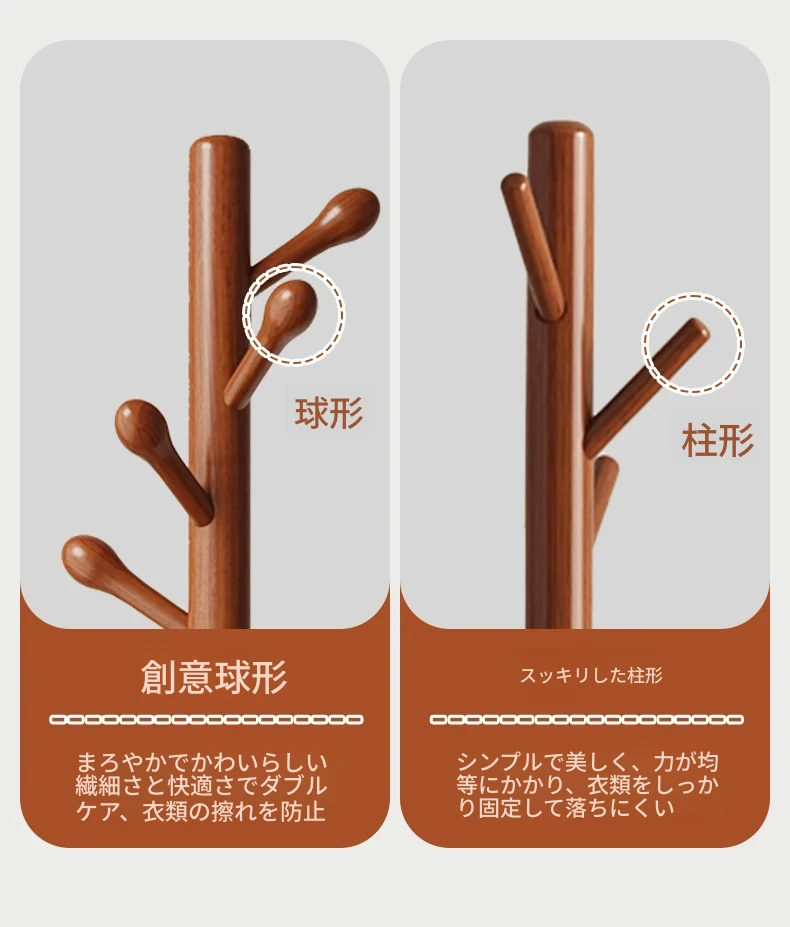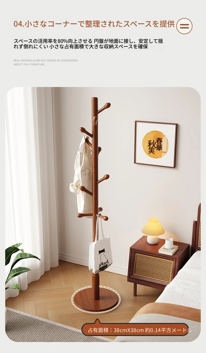 三夢の無垢材ハンガー/立て掛け式コートラック|シンプルモダンデザイン|寝室・リビングに最適|衣類やカバンを美しく収納!