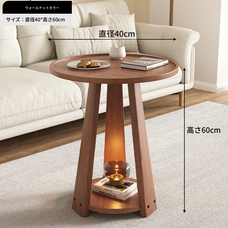 ウォールナット色フレーム + ナチュラルウッド色天板 53*53*65