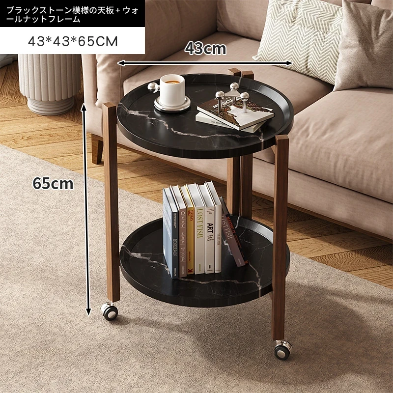 ナチュラルウッド色フレーム + ブラックストーン模様天板 43*43*65