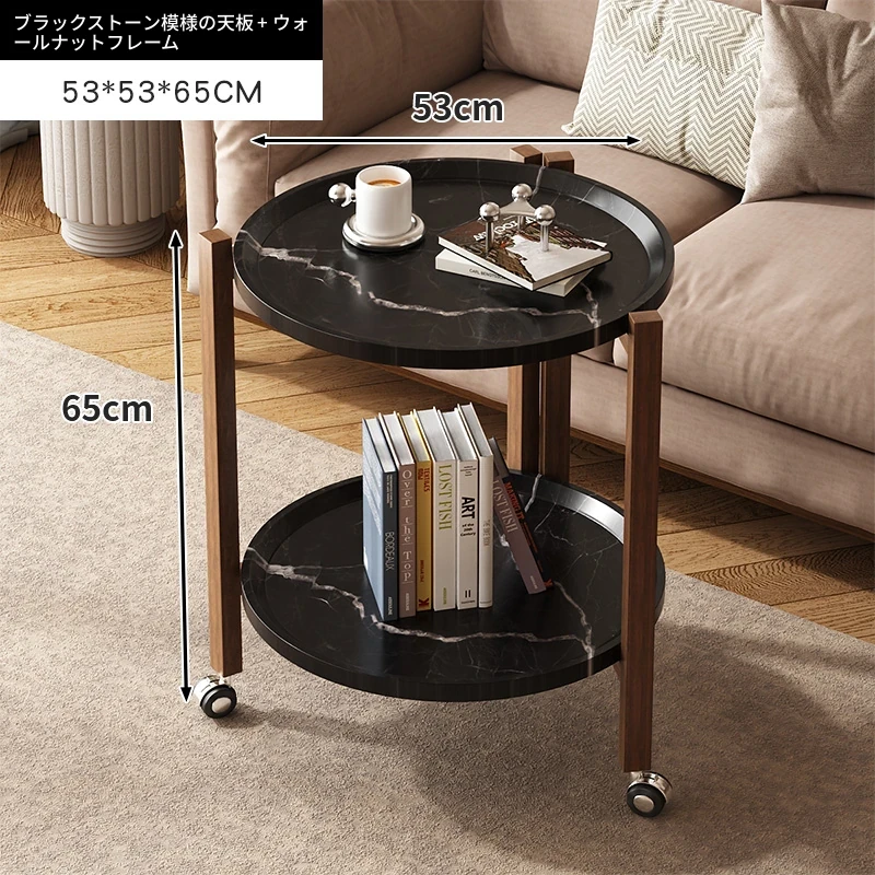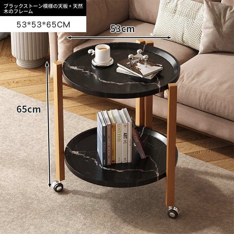 ナチュラルウッド色フレーム + ブラックストーン模様天板 53*53*65