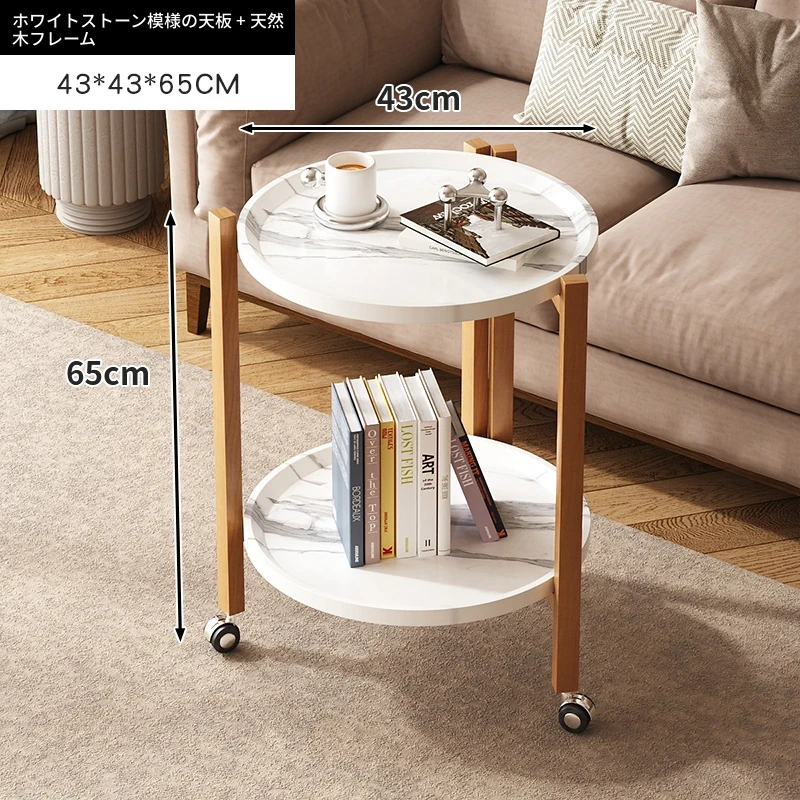ナチュラルウッド色フレーム + ホワイトストーン模様天板 43*43*65