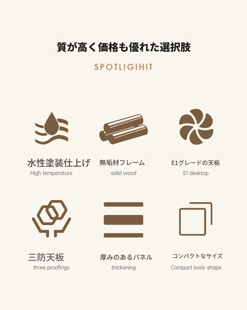 ナチュラルウッド色フレーム + ホワイトストーン模様天板 53*53*65