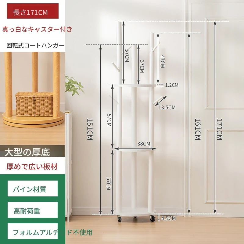 【アップグレード回転式】ナチュラルホワイト(厚手の無垢材 - 10年保証)