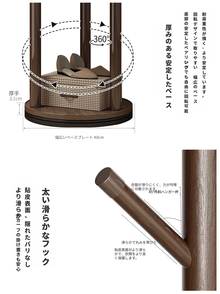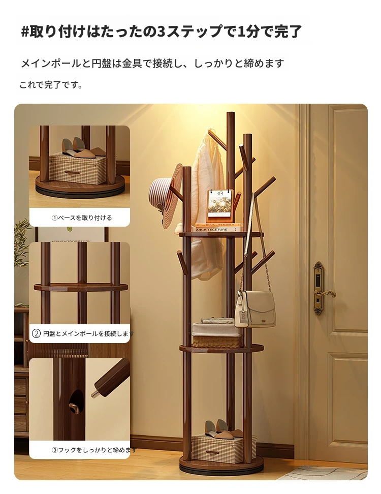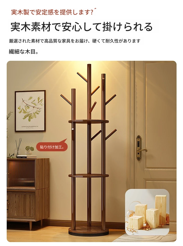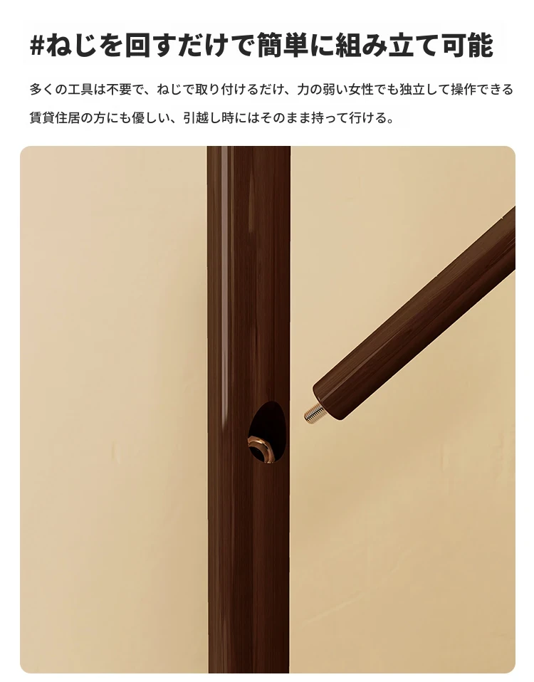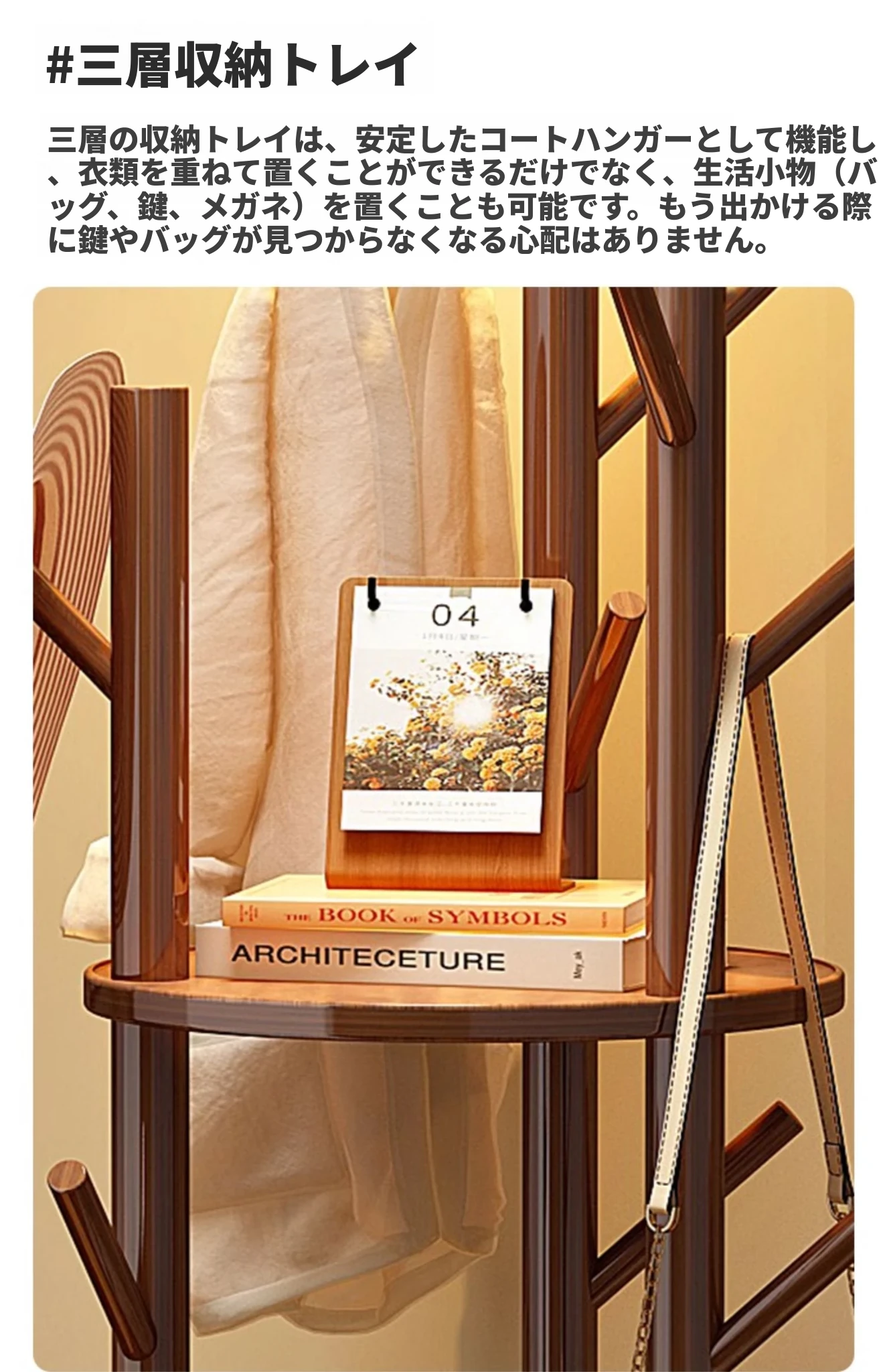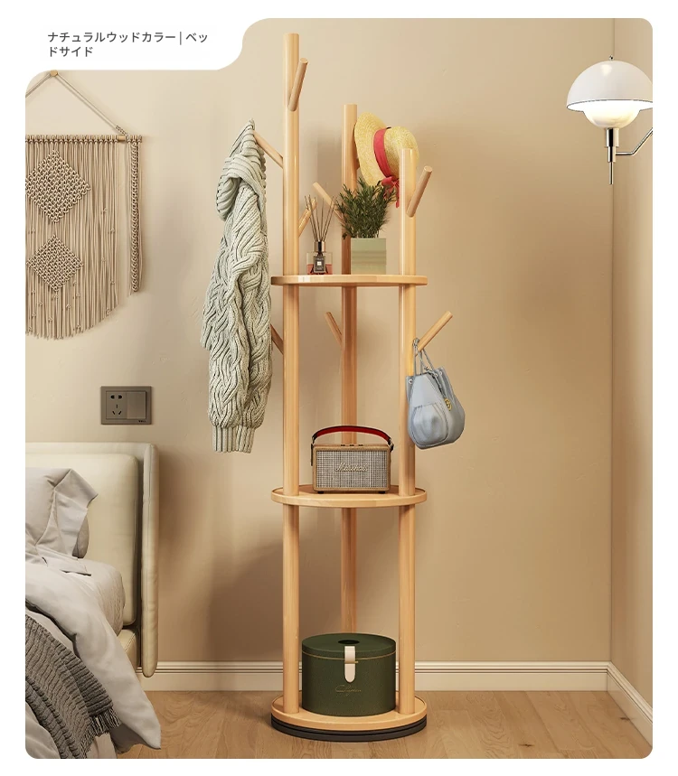 三夢の無垢木製コーナー衣装ハンガー - 移動可能なキャビネット、寝室やリビングにぴったりなシンプル収納!おしゃれで便利なハンガーで、空間をスッキリ整頓。毎日のコーディネートが楽しくなる!