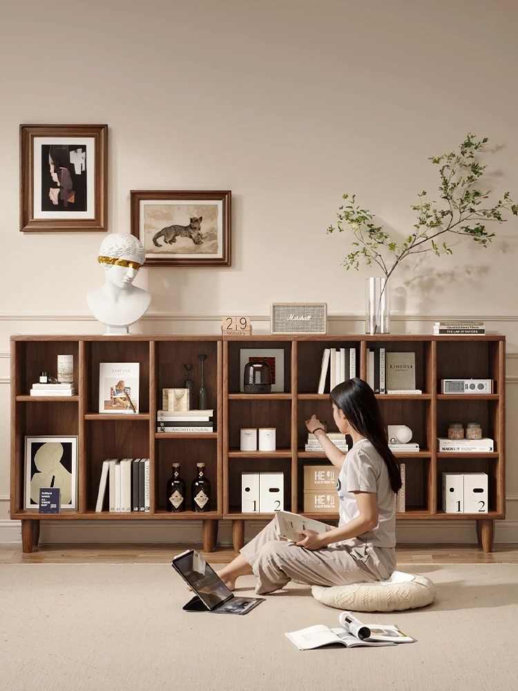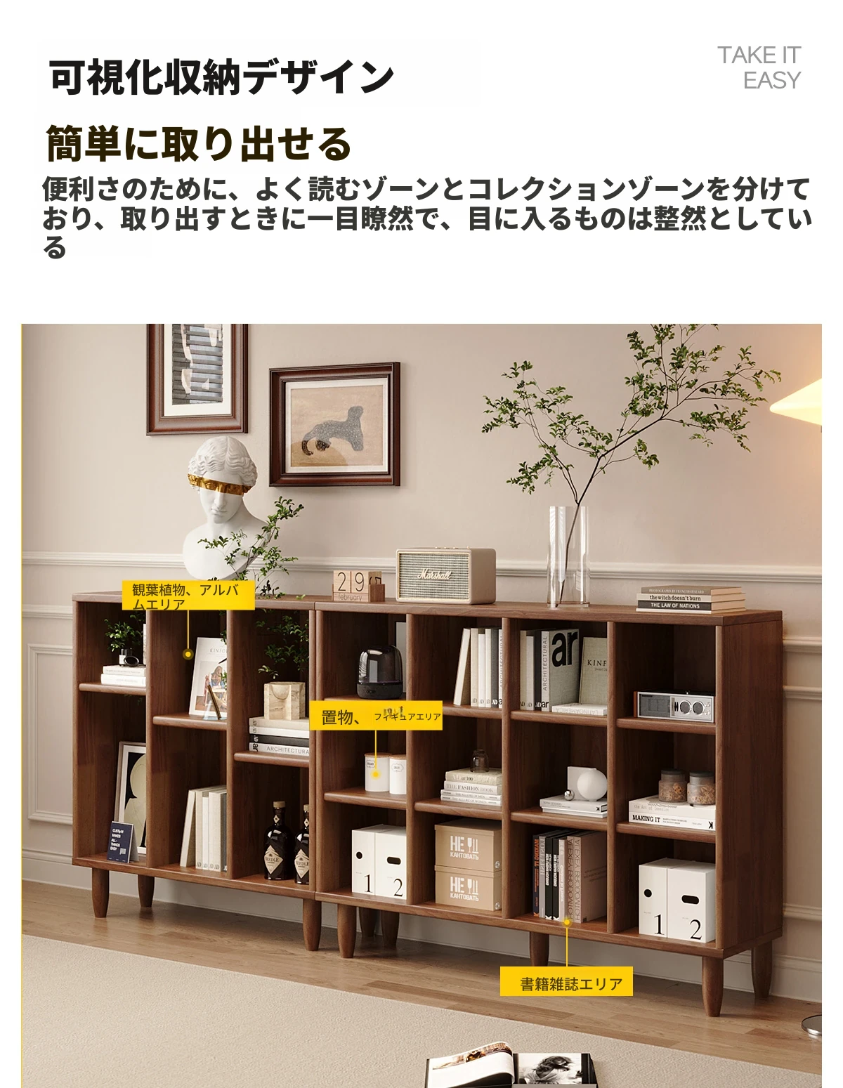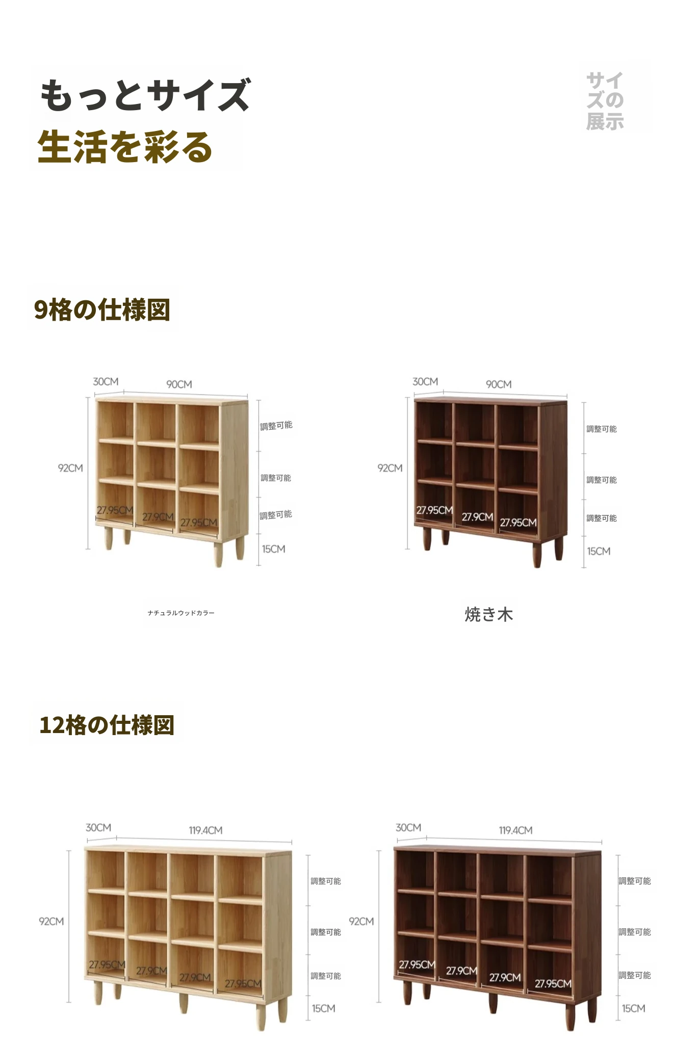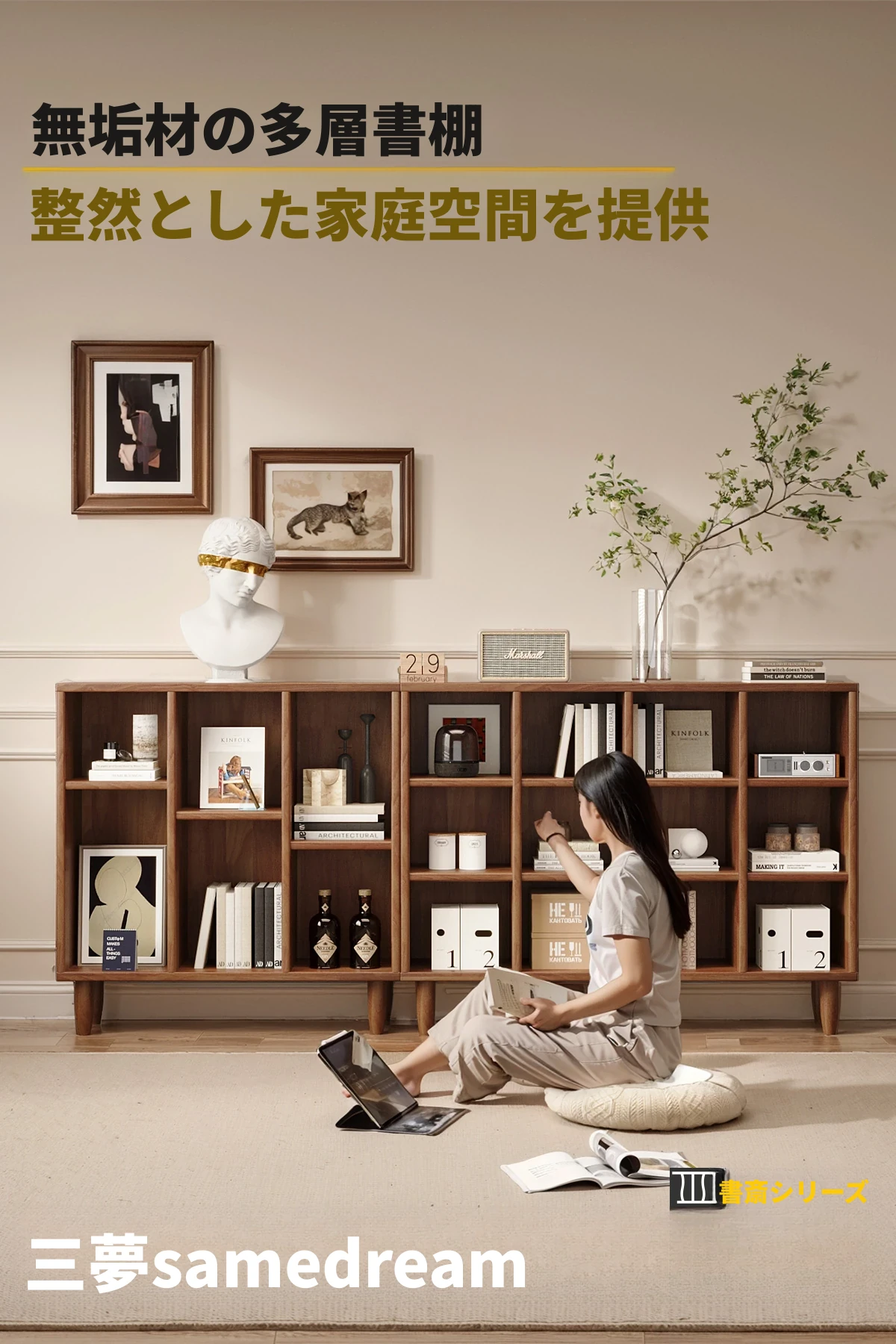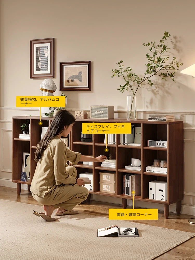 木製の本棚・フロア収納ラック - 自由に組み合わせ可能なシンプルなデザインのテレビ台・サイドキャビネット・格子棚。おしゃれで機能的な収納スペースを実現し、あなたのお部屋をスタイリッシュに演出します!